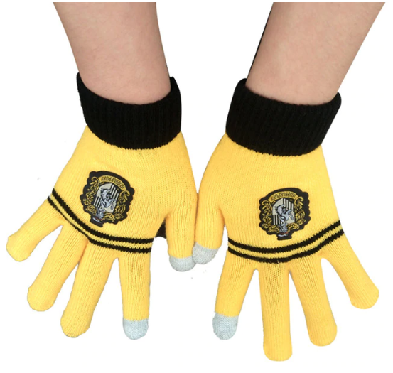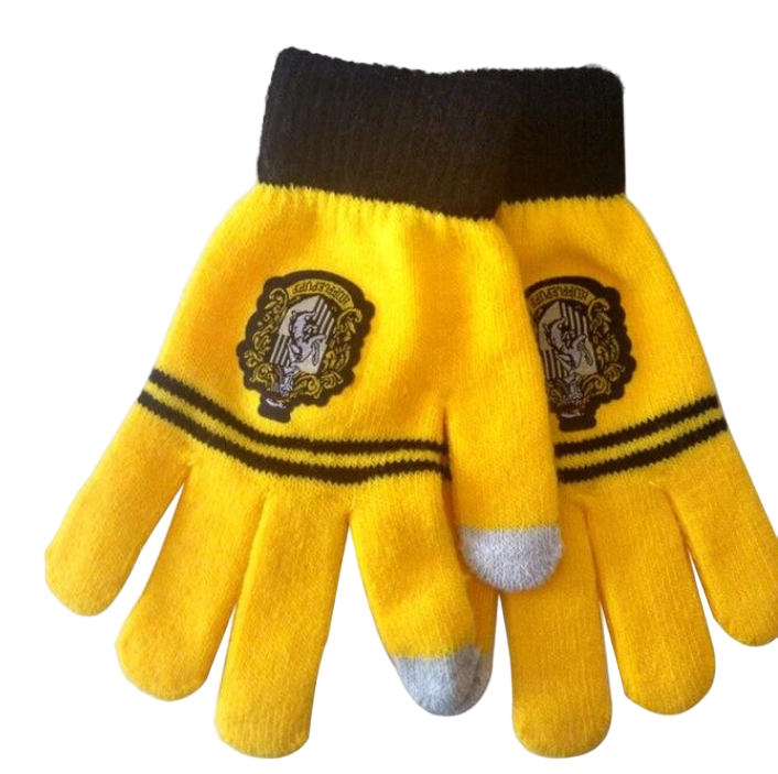 Beautiful and warm wizarding gloves in Hufflepuff house.  Shows off your Potterheard pride with house crests emblazoned on the top of each hand and magical fabric that allows use of a cell phone.  Rich and vivid house colors show off to each Muggle where your allegiance lies.