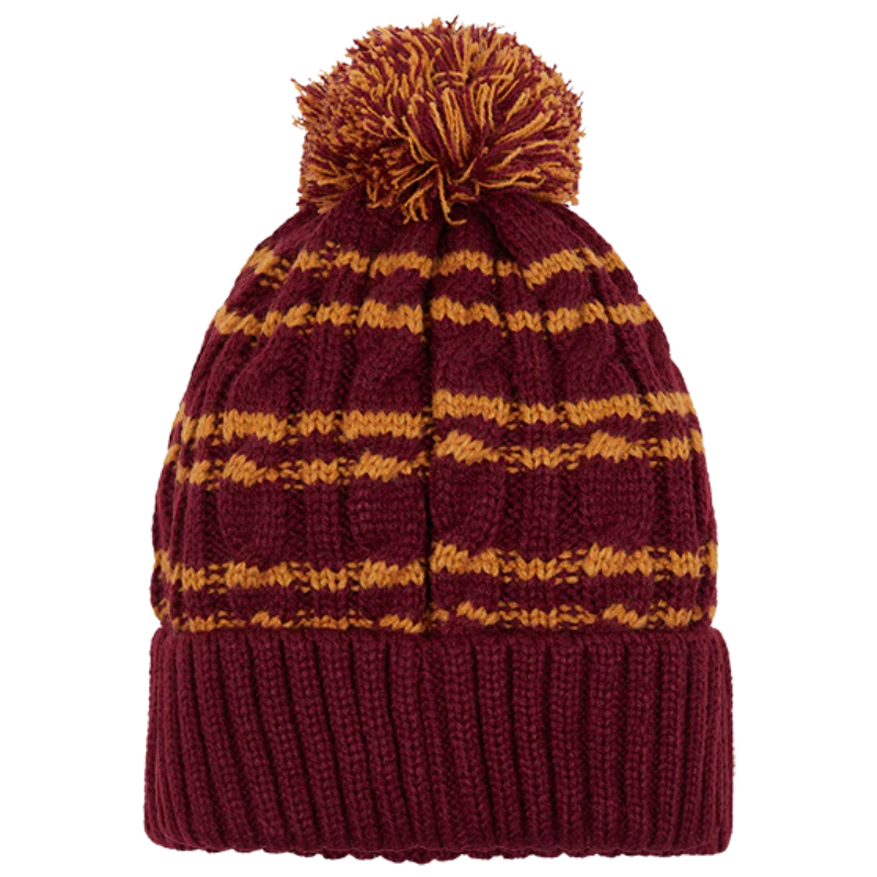 Keep warm and cozy on trips between Hogwarts and Hogsmeade with this Gryffindor Knitted Hat. The hat features the traditional Gryffindor colors of burgundy and yellow and has been designed with the Gryffindor house crest embroidered into the center of the hat which showcases a lion, the iconic animal of Gryffindor.