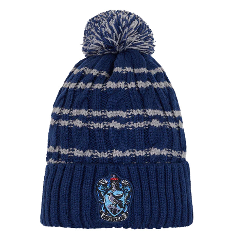 Keep warm and cozy on trips between Hogwarts and Hogsmeade with this Ravenclaw Knitted Hat. The hat features the traditional Ravenclaw colors of navy blue and grey and has been designed with the Ravenclaw house crest embroidered into the center of the hat which showcases an eagle, the iconic animal of Ravenclaw.