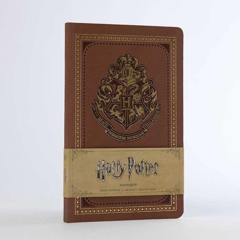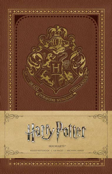 Featuring a flexible leatherette cover and 128 lined, acid-free pages of high-quality, heavy stock paper, the Harry Potter: Hogwarts Ruled Notebook takes both pen and pencil nicely to encourage inspiration, inviting fans to record their thoughts and chronicle their adventures.