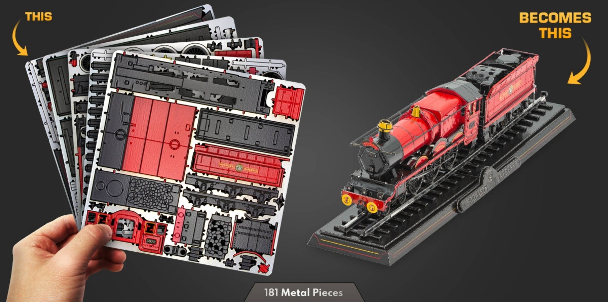 Product Features: Official Harry Potter Licensed Model\ Made from high-quality steel sheets – no glue or solder required Includes track for display